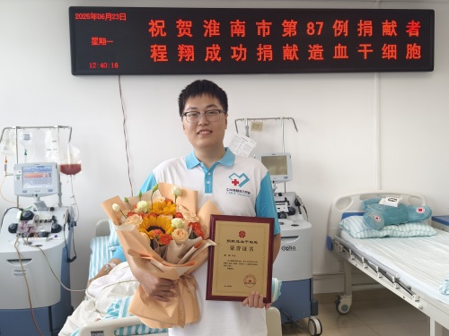 6月13日,他刚离开奋斗、奉献了四年的安理校园回到千里之外的家乡,却接到了一份特殊的生命召唤,他便立即返回、奔赴救命的征程,完成三年前签下的那份无声的“印章”和生命的约定。6月23日,他在安徽省立医院用自己的造血干细胞挽救了一位陌生人的生命,交出了一份最完美的毕业答卷,见证了四年奉献不止、青春闪光的大学生涯和一名优秀大学生共产党员的初心使命。他就是安徽理工大学电气与信息工程学院2025届“品学兼优毕业生”程翔,他也成为淮南市第87例、安徽理工大学第33例造血干细胞捐献者。
